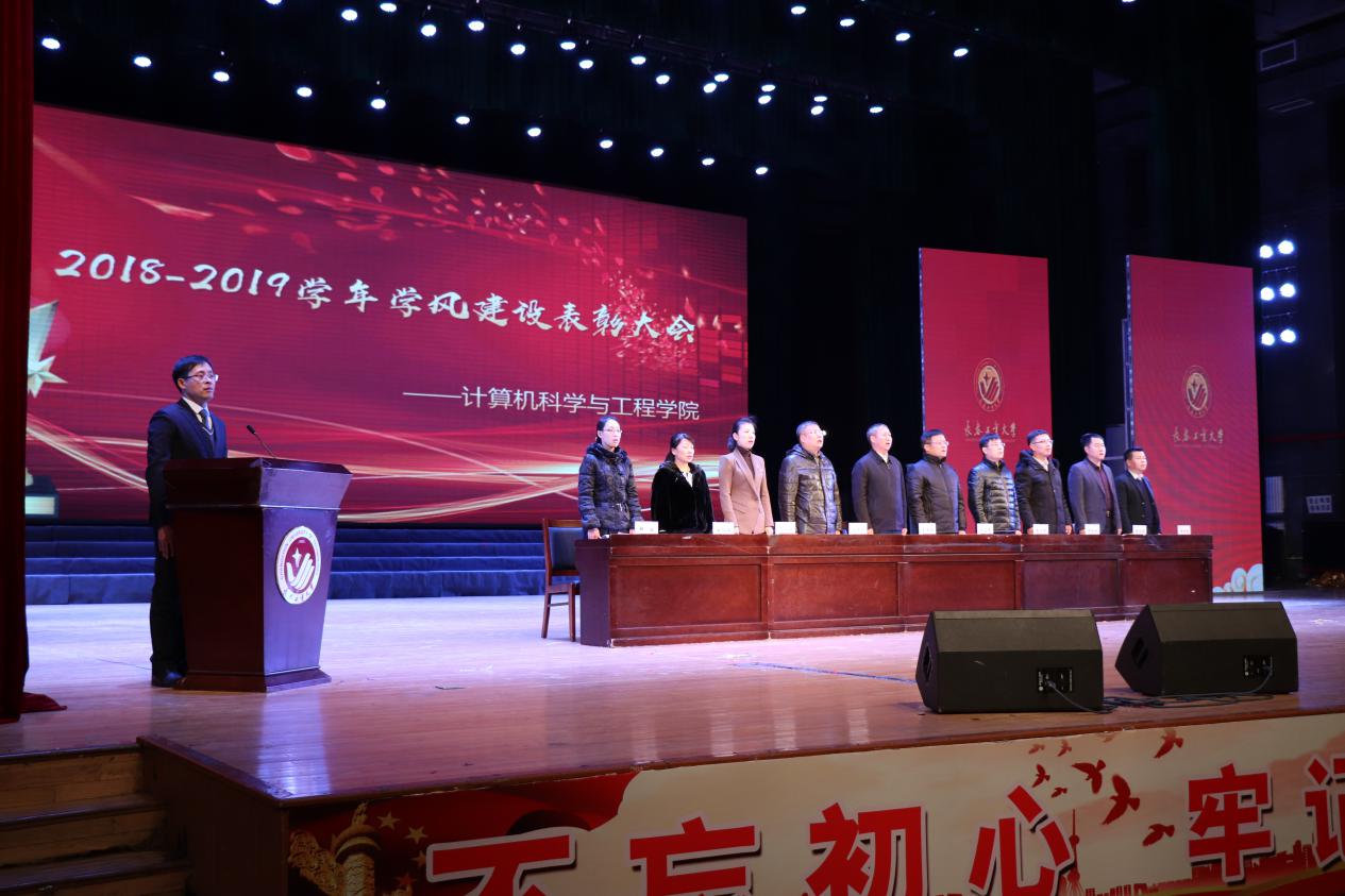 副院长郑虹宣读了《关于表彰2018-2019学年学风建设工作先进集体及优秀个人的决定》,院长助理程超宣读了《关于表彰2019年大学生科技竞赛月优秀团队及个人的决定》。