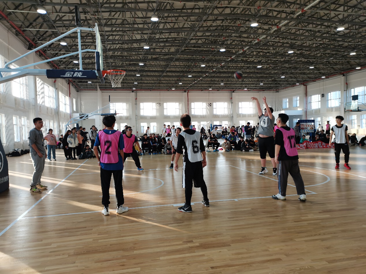 的四个专业组成。比赛采用四节制,每节12分钟,由裁判员及记分员负责比赛的得分统计。随着比赛开始的哨声,现场同观众高声呐喊,为自己的队伍加油助威。队员们拼尽全力,精诚合作,本着友谊第一,比赛第二的精神与对手进行激烈的对抗。裁判员、记分员尽职尽责,关注着每一处细节,维护比赛的公平公正性。