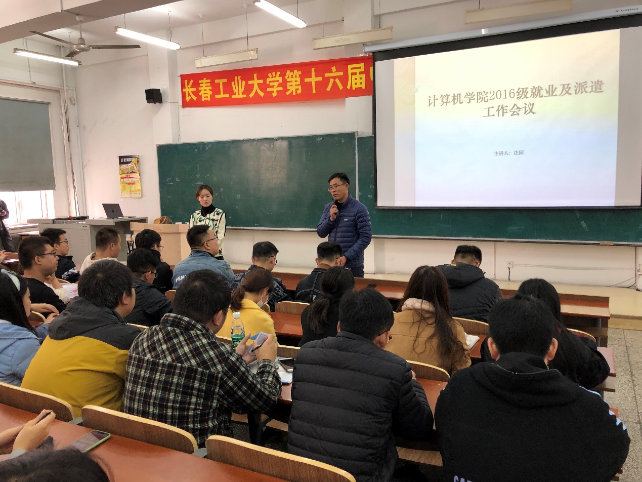 随后,庄园老师就派遣系统的填写做了详尽的说明和细心指导。需要同学们填写的个人基本信息和就业报到信息要求同学们务必认真对待,特别是系统的生源地的信息是否准确,如果不正确需要及时上报给老师并改正。同时针对签三方协议就业填写的方法也做了细致地讲述。最后,庄园老师对2016级同学就业情况作了简单的总结和汇报,希望同学们珍惜时间,把握好每次挑战和机遇。本次会议圆满成功。