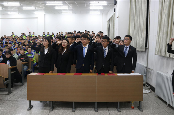 大会在庄严的国歌声中拉开了序幕。首先,由第二十七届学生会主席丛龙旭从成绩概况及问题清单等方面对过去一年的工作进行了总结汇报,并表达了对新一届学生干部的美好祝愿和鼓励。随后,王珺楠老师宣读了新一届团委、学生会、社团联合会主要学生干部名单。接下来,第二十八届学生会主席乔俊豪代表新一届团学干部做工作展望,表达工作决心和信心。第二十八届社团联合会主席孙冠航带领新当选学生干部宣誓,表达为校服务,为学生服务的工作热情和决心。季宏伟老师为团学联学生干部代表颁发了聘书,他对新一届学生干部表示祝贺的同时,充分肯定了上一届学生干部的工作和成绩,并对新当选的学生干部提出了要求和希望:要求他们要加强学习,内练素质,外塑形象,工作中要团结协作,凝心聚力。力争成为一支“讲奉献、勇担当、有作为”的高效的团学干部队伍,为6合彩开奖