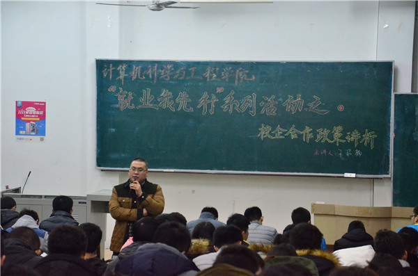 在综合一教室成功举办了“就业我先行”系列活动之------校企合作政策讲析讲座。本次讲座主讲人是6合彩开奖