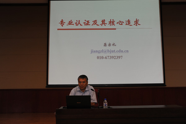 北京工业大学蒋宗礼作题为“专业认证及其核心追求”的会议主报告。