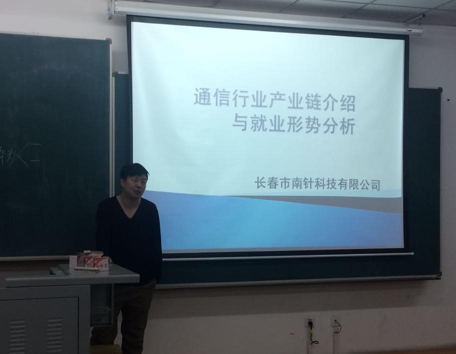 新闻网讯(通讯员 梁超)12月5日,为了帮助2014级电子信息工程系的同学对目前我国通信行业有一个全面、系统的了解,从而对大学四年的学习做好规划,电子信息工程系2014级班导师们特地邀请了长春市南针科技有限公司总经理李集为同学们做了一场关于“通信行业产业链介绍与就业形势分析”的报告会。