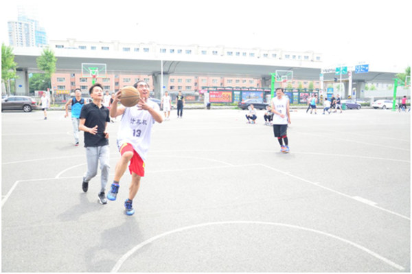 本届篮球赛本着友谊第一,比赛第二的准则。在比赛现场上的师生球员们雄姿英发,你争我夺。毕业生同学打法上有组织,有配合。老师们也毫不落后,凭着精准的投篮把握着比赛的节奏。双方球员有交流,有沟通,比赛氛围热烈友好。