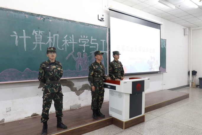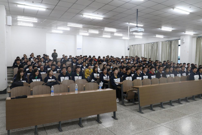 在西阶101、102教室组织开展征兵宣讲大会。本次会议由教官任时瑶、张一博主持,2020级全体学生参加。