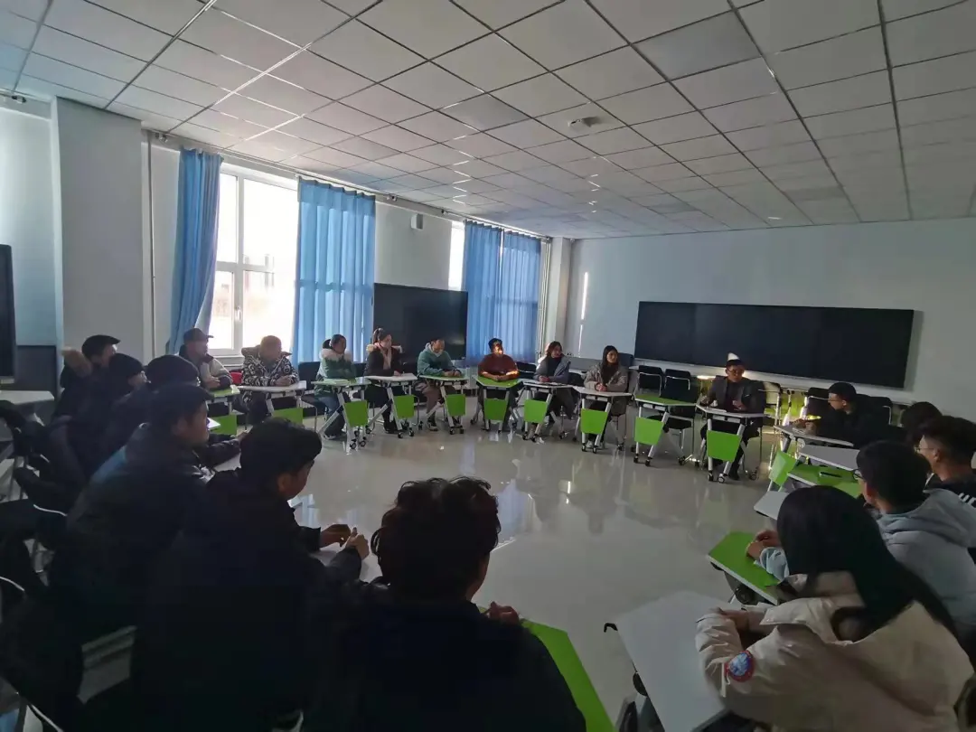 党委副书记季宏伟出席座谈会,21级辅导员周扬,21级各班班长、团支书参加。