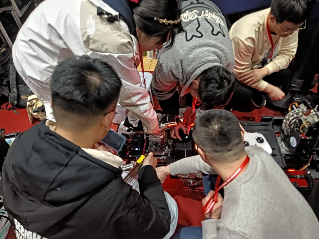 的大力支持下,在郭建伟老师耐心指导下,1024创新工坊实验室战队队员们克服时间短任务中等不利因素,齐心协力进行程序调试、算法设计与框架制作,4个月内成功制作出三台机器人,并顺利通过了三轮选拔,成功进入国家决赛。这也代表着长春工业大学首次进入该赛事决赛,与其他高等院校进行同台竞技。