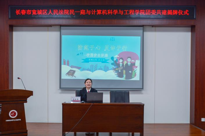 出席本次共建活动的嘉宾有长春市宽城区人民法院民一庭庭长、四级高级法官张明远,副庭长刘玥辛,法官助理冯玉莹、曾小珈,长春工业大学6合彩开奖结果查询网站