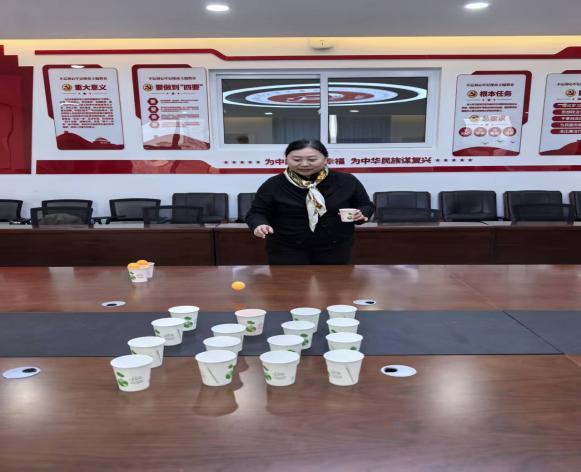 纸杯列队,错落有致,分值的梯度藏着挑战与惊喜。乒乓球从指尖飞出,掠过空中,在桌面轻轻反弹,向着心仪的纸杯奔赴而去。每一次精准入杯,都是力度与角度的精妙把控,见证着勇气与技巧的双重绽放。老师们在乒乓球的弹跳与坠落间,感受运动的灵动与竞技的欢愉。