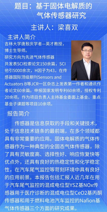 “登高博见” —— 基于固体电解质的气体传感器研究 主讲人:梁喜双 时间:2022年11月23日 13:30 地点:计算机楼323