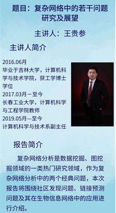 “大知闲闲”—— 复杂网络中的若干问题研究及展望 主讲人:王贵参 时间:2022年11月16日 14:00 地点:计算机楼323