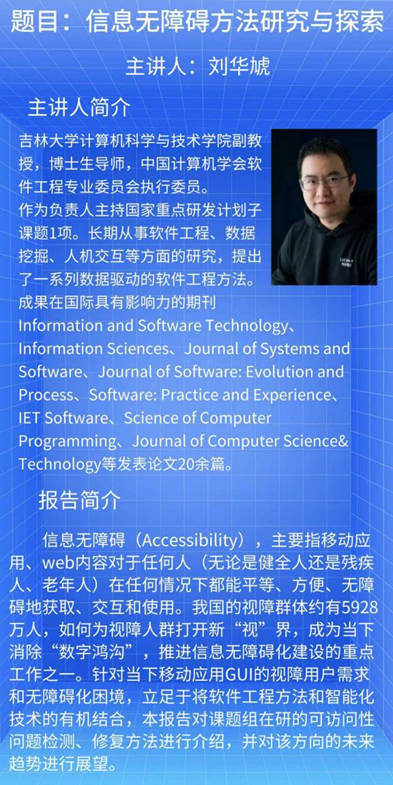 “登高博见” —— 信息无障碍方法研究与探索 主讲人:刘华虓 时间:2022年11月23日 15:30 地点:计算机楼323